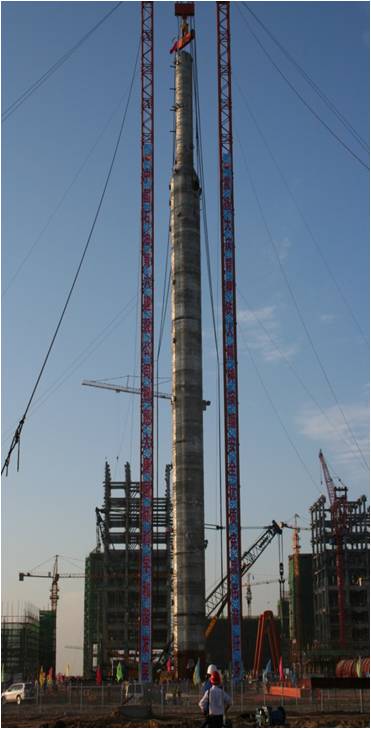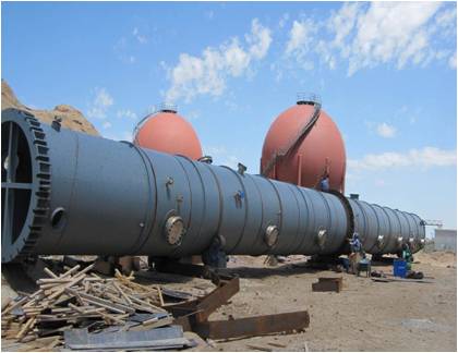 大唐國(guó)際煤制天燃?xì)忭?xiàng)目設(shè)備:其中我公司承接亞洲最大尾氣吸收塔,直徑5.7米高96米。