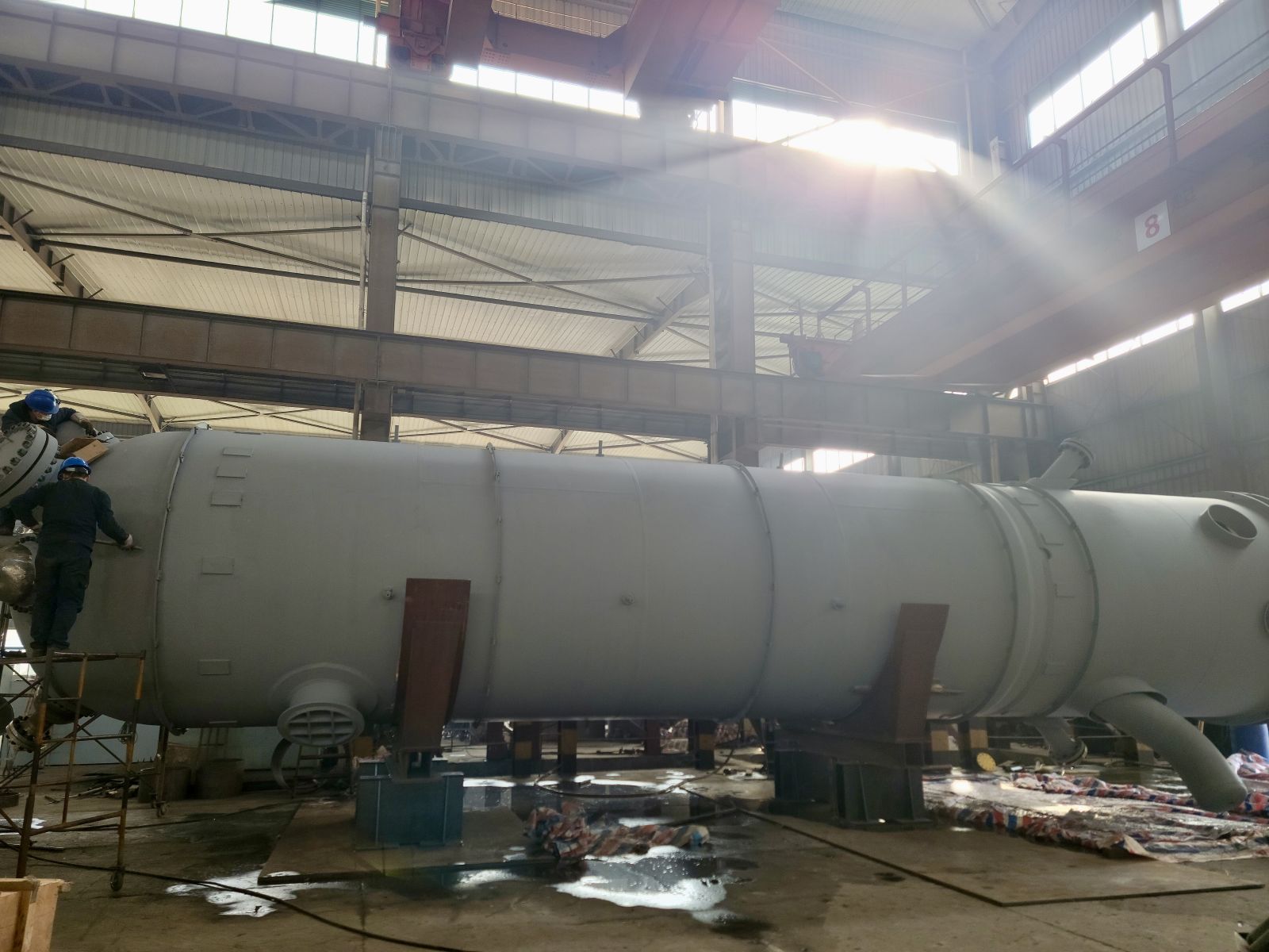 急客戶之所急,解客戶之所憂。我司車間班組連日加班加點,團(tuán)結(jié)一致,上下齊心,在保證質(zhì)量的前提下超前完成生產(chǎn)制造。規(guī)格為3000×18000的甲醇合成塔,我公司提前十天交付客戶。