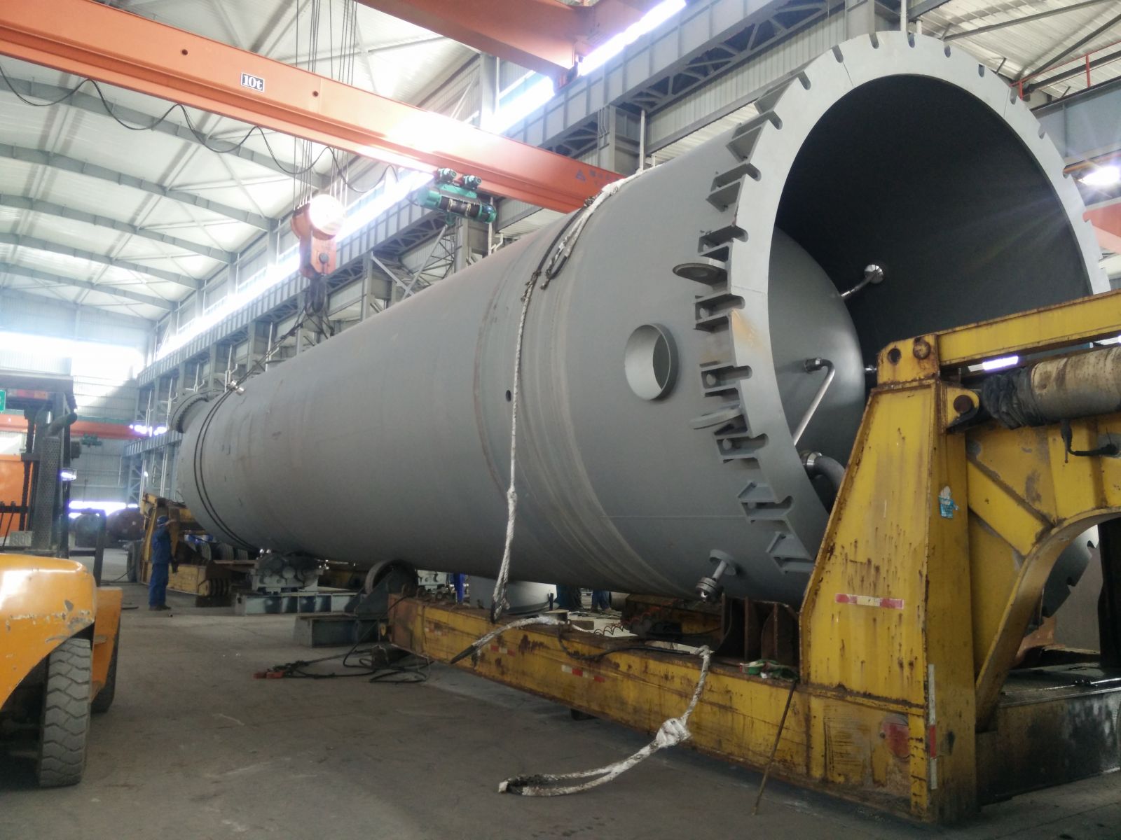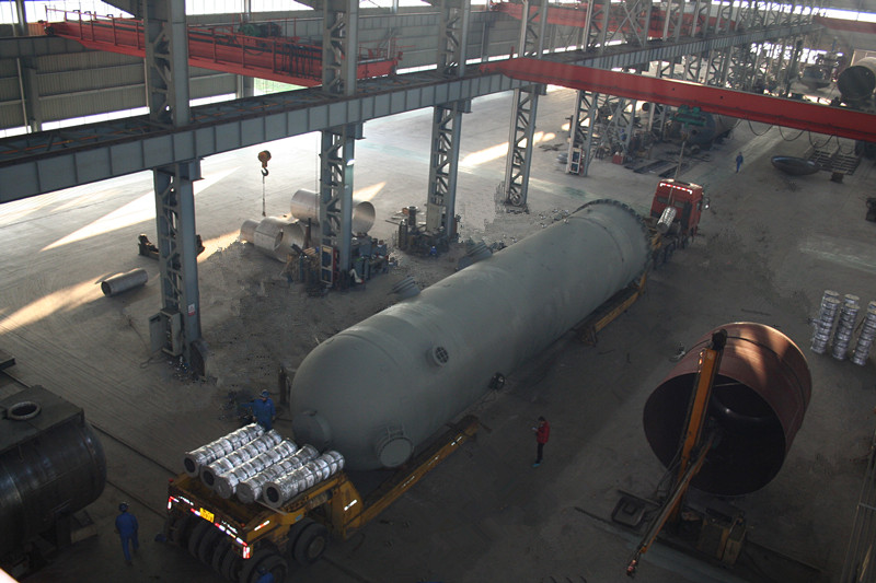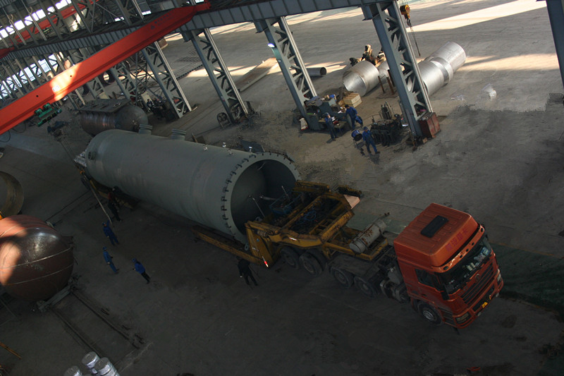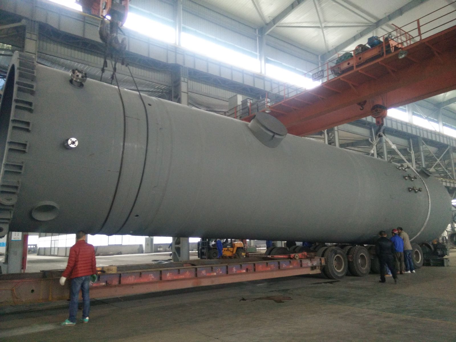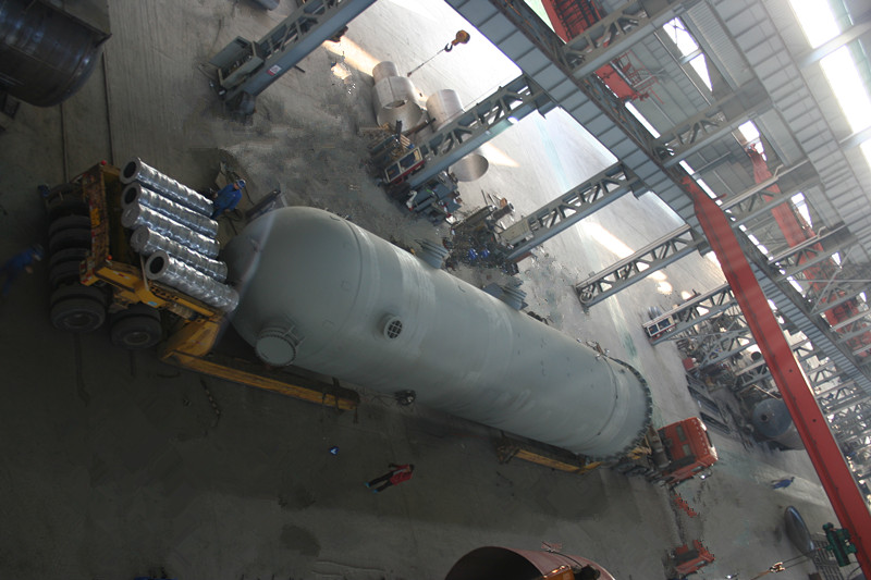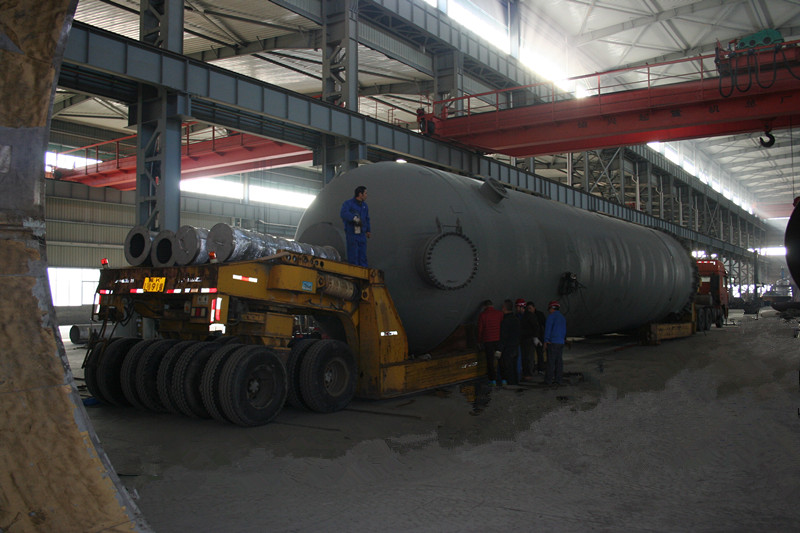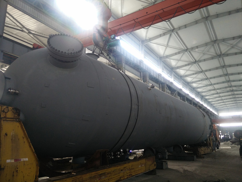 直徑4000mm,壁厚58mm,長約20000mm,S30408+Q345R復(fù)合板,重達(dá)170噸大型氣液分離器
