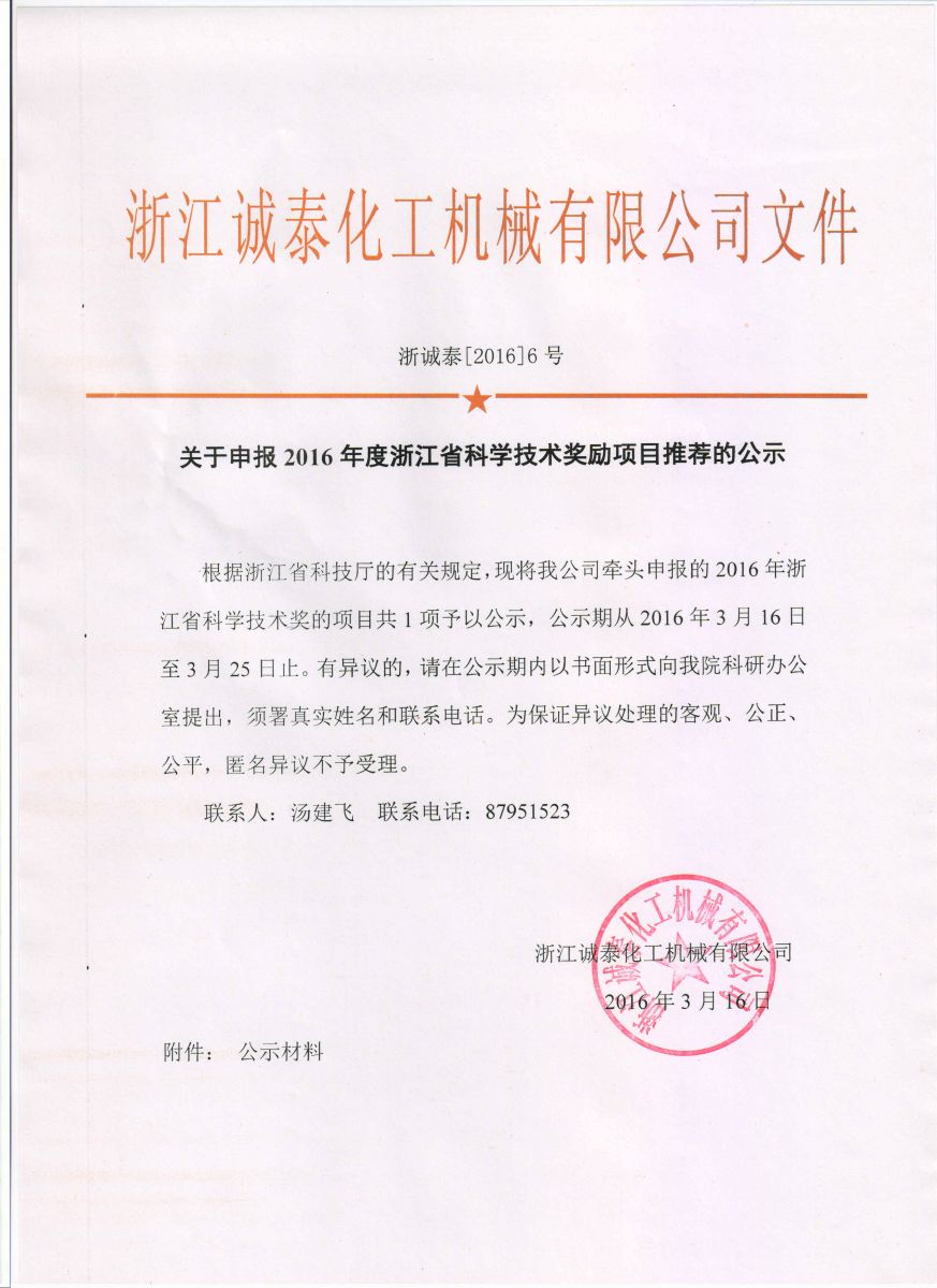 關(guān)于申報2016年度浙江省科學(xué)技術(shù)獎勵項目推薦的公示